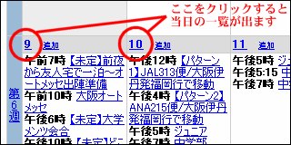 各日付をクリックすると、その日の全スケジュールが一覧となって